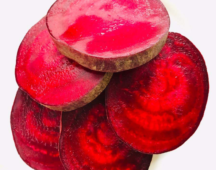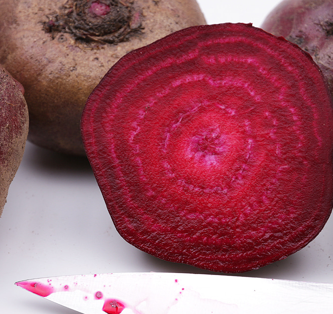 레드비트에 많이 들어있는 진분혹색을 띠는 베타시아닌은 암세포 성장을 막아주는 선분으로 특히 피부암, 폐암, 결장암을 예바하는 것에 좋습니다.