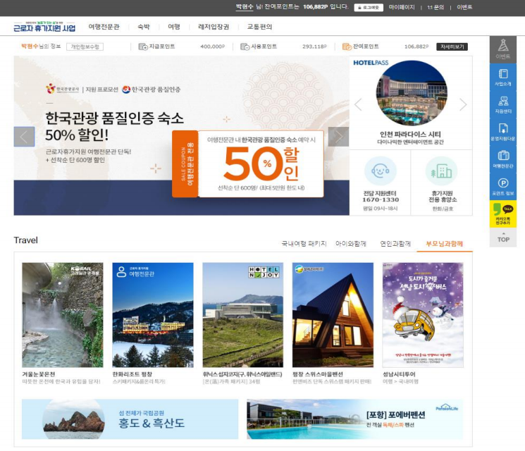 대상자로 선정이 되면 여행적립금을 조성해 근로자는 국내여행 휴가 온라인몰에서 40만원 상당의 적립포인트를 얻어 자유롭게 사용할 수 있게 됩니다.