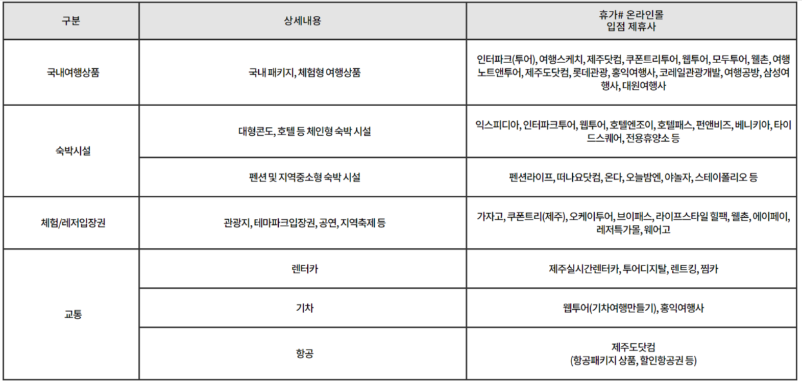 7. '휴가#' 온라인몰에서 국내여행 관련 상품을 자유롭게 구매 가능합니다.