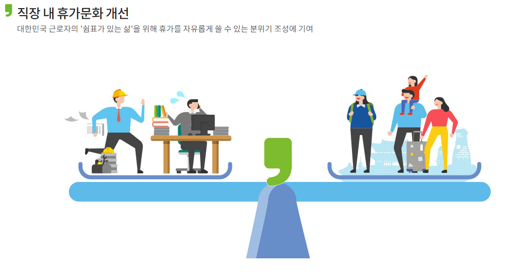 대한민국의 근로자들을 위해 한국관광공사는 여가 힐링의 중요성을 부각하고 '쉼표가 있는 삶'을 위해 여행 비용을 지원하는 사업을 진행하게 되었다고 합니다.