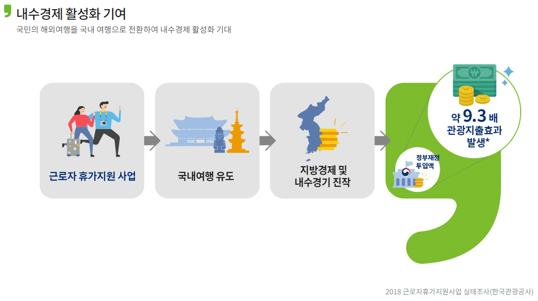 근로자 휴가지원사업이란 한국관광공사에서 주도하는 사업으로 직장 내 자유로운 휴가문화를 만들기 위해 기업과 정부과 같이 근로자의 국내 여행경비를 지원하는 사업입니다.