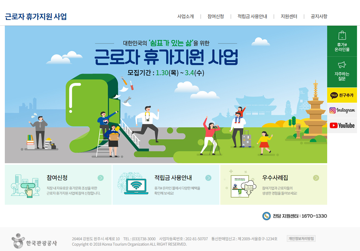 근로자 휴가지원사업 참여 모집기간 : 2020년 1월 30일(목) ~ 2020년 3월 4일(수)